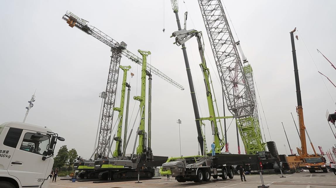 ▲中聯(lián)重科室外展區(qū)部分產(chǎn)品