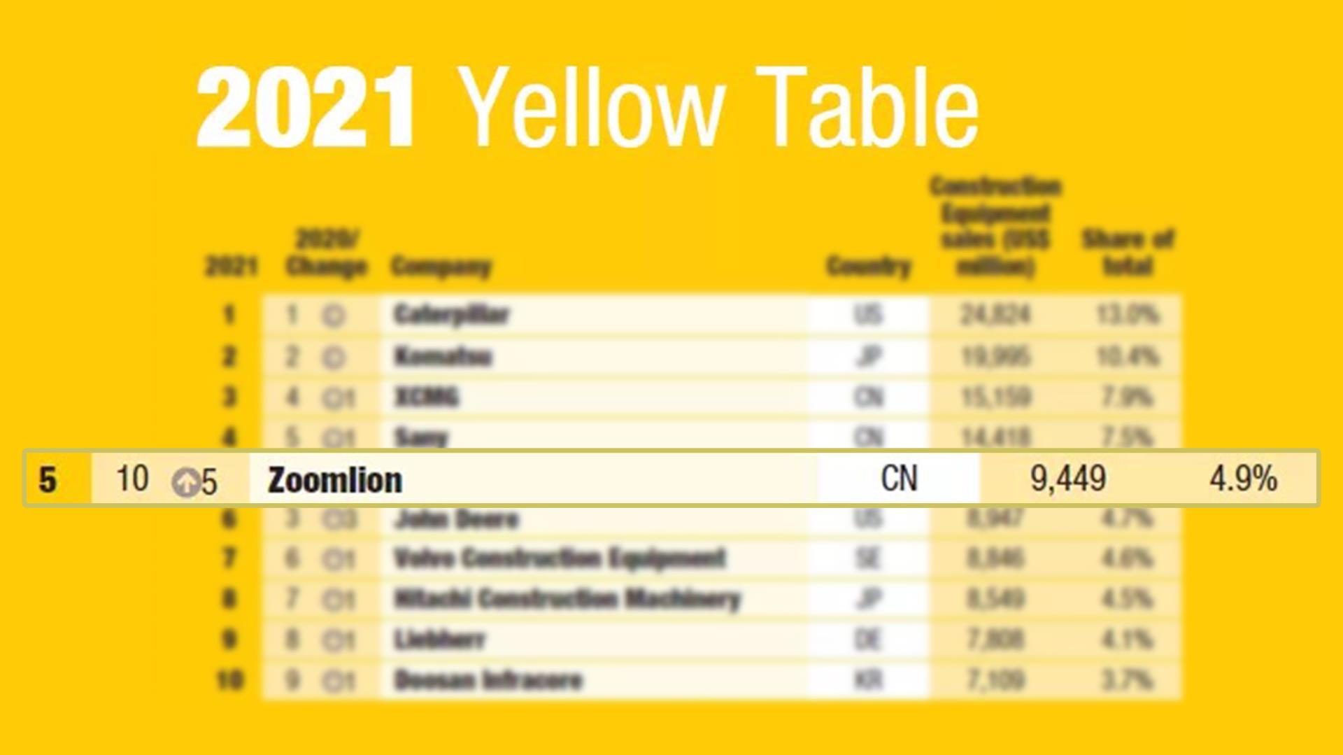 △中聯(lián)重科位列2021 Yellow Table?全球前五強