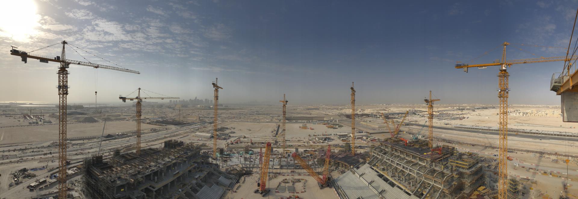 盧賽爾體育場(chǎng)主體為鋼梁結(jié)合混凝土結(jié)構(gòu),使用鋼量10萬(wàn)噸,層膜結(jié)構(gòu)達(dá)4.5萬(wàn)平方米,為目前世界上**大的膜結(jié)構(gòu)。任杰介紹:“中聯(lián)重科8臺(tái)TC8039-25塔機(jī),按照建筑物外圍均勻分布,全方位覆蓋整個(gè)項(xiàng)目,承擔(dān)了整個(gè)項(xiàng)目大部分物料的吊裝?!?/span>