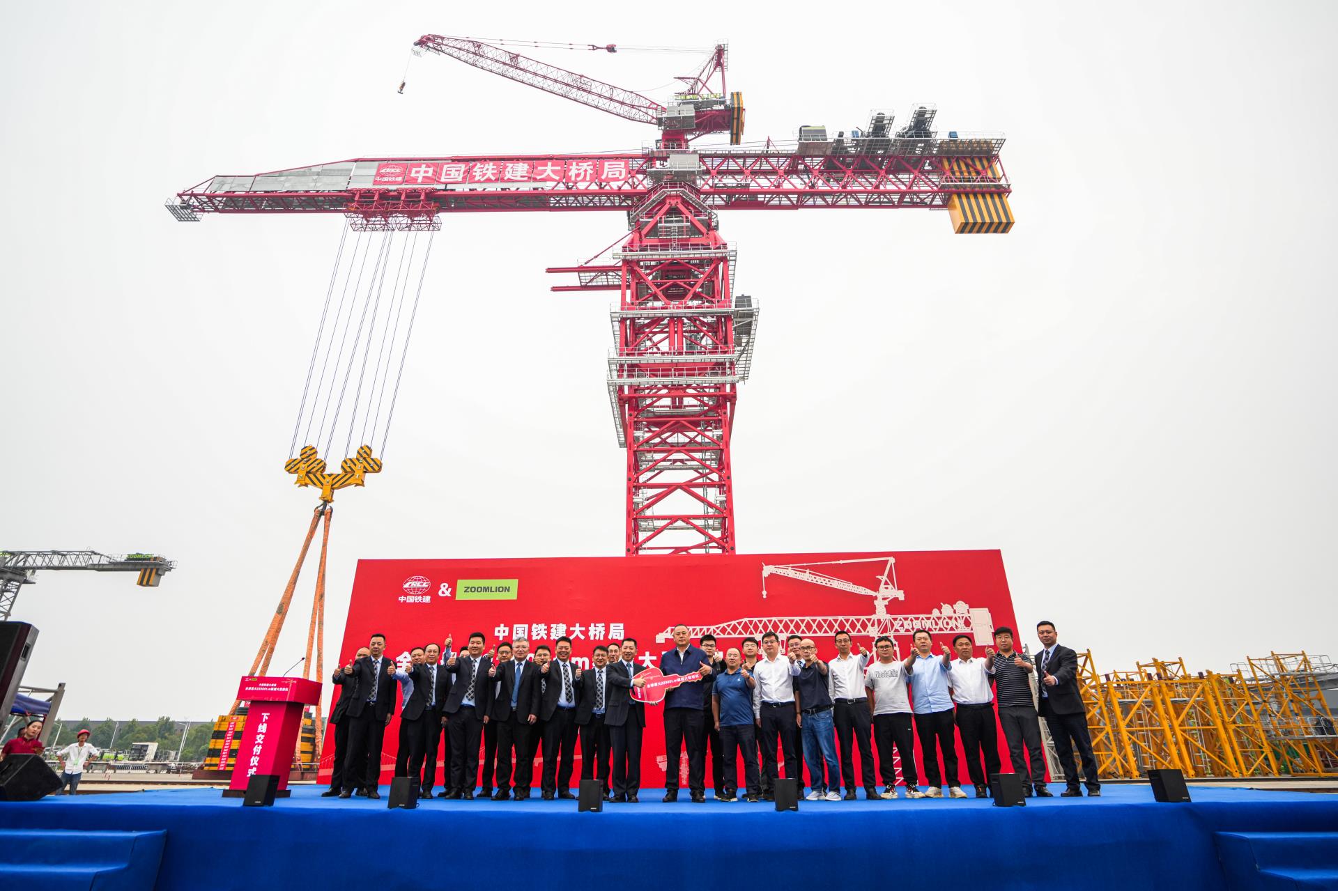 中國鐵建大橋局副總經(jīng)理劉長海,中聯(lián)重科助理總裁、建筑起重機械分公司總經(jīng)理黃建兵,中國鐵建大橋局、業(yè)主相關(guān)單位、中聯(lián)重科建筑起重機械分公司相關(guān)領(lǐng)導(dǎo)共同出席下線交付儀式。