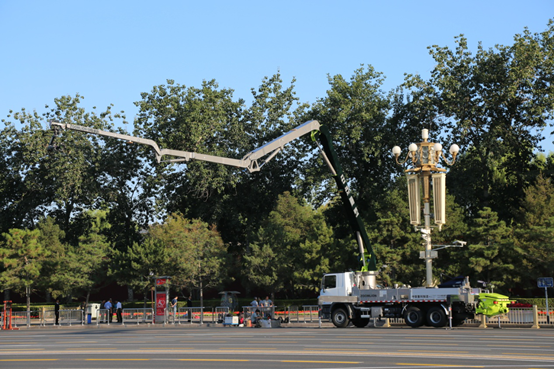 此次大閱兵拍攝,中聯(lián)重科派出包括兩臺80噸大型起重機,兩臺95噸大型汽車起重機,兩臺16噸汽車起重機,一臺60米亞洲**高云梯消防車,一臺53米消防云梯車,一臺33米泵車,全力配合閱兵直播。讓我們一起來看看位于天安門核心區(qū)域及長安街沿線的這些高端裝備產(chǎn)品是如何配合央視進行全球直播工作的?