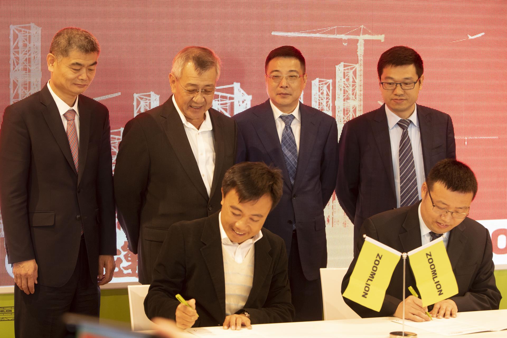 ??? 在中聯(lián)重科副總裁熊焰明,中聯(lián)重科助理總裁、建筑起重機械公司總經理唐少芳,新加坡長運集團主席Ang Kah Hong,機電商會副會長王貴清的見證下,中聯(lián)重科海外公司總經理助理劉堅強和長運集團首席運營總裁進行了現場簽約。