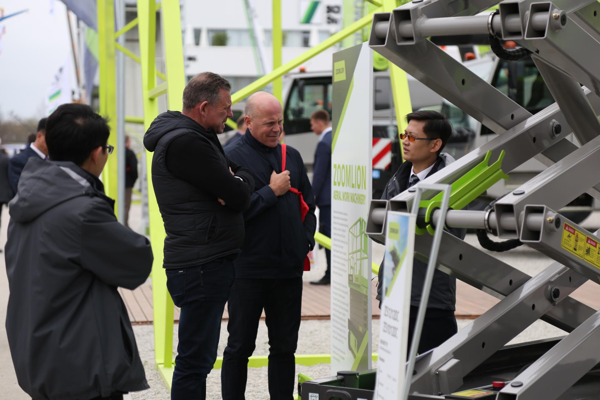 ▲2019德國寶馬展上,專業(yè)客戶正在咨詢中聯(lián)重科產品信息