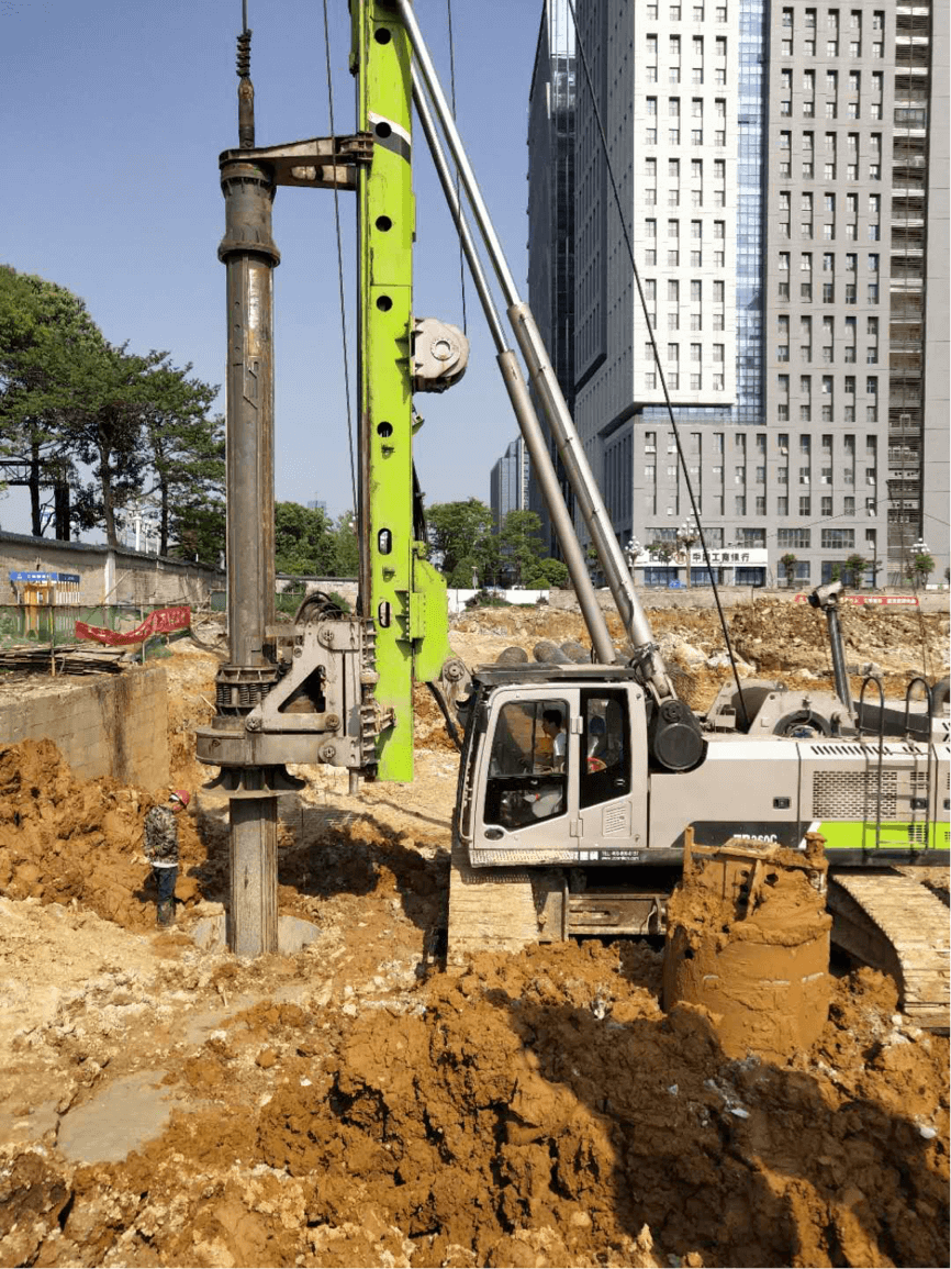 ▲中聯(lián)重科—3系列旋挖鉆在貴陽打房建樁,**高巖石強度達60MPa