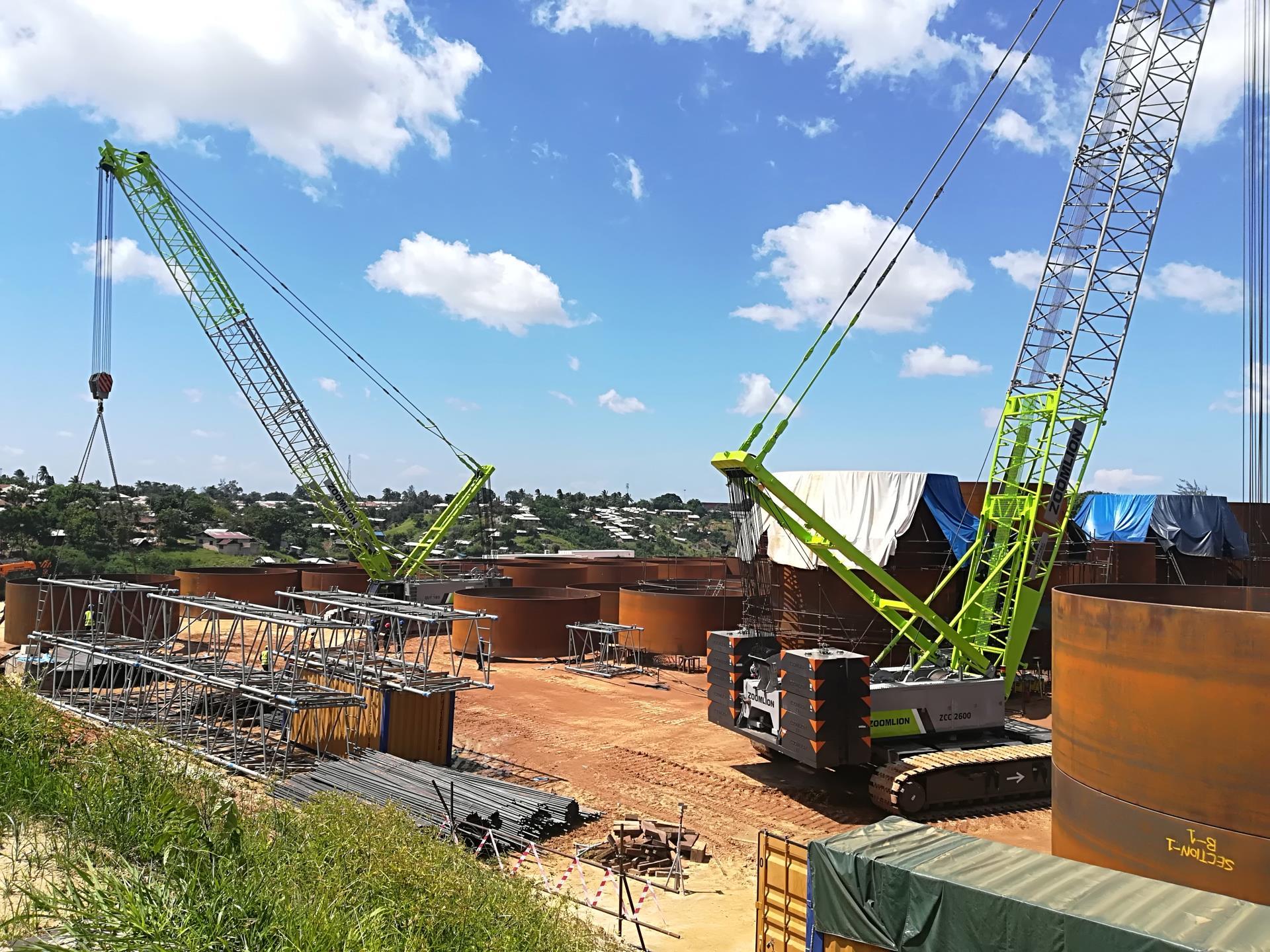 ▲中聯(lián)重科ZCC2600履帶吊助建肯尼亞蒙巴薩石油項(xiàng)目