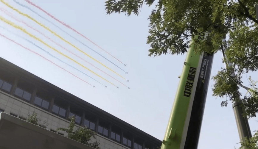 ▲中聯(lián)重科近20款高端裝備助力新中國成立70年大慶直播