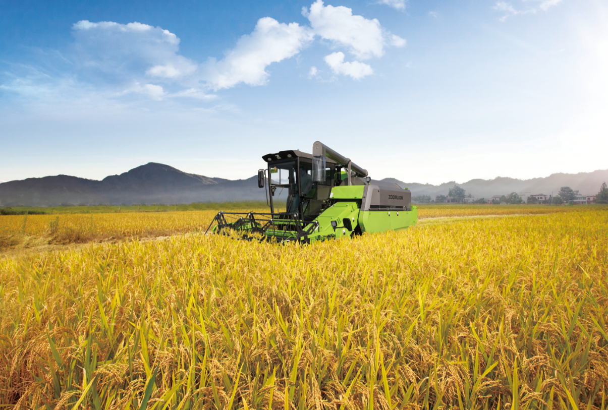 ▲中聯(lián)重科智慧農(nóng)機收獲水稻