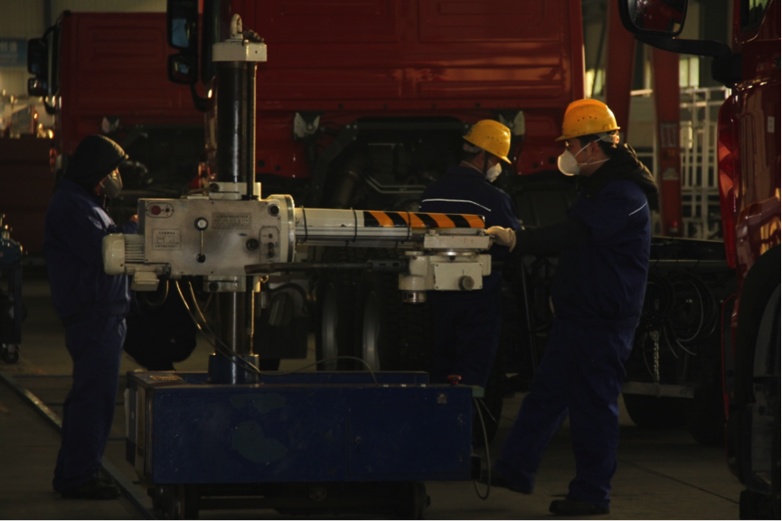 ▲中聯(lián)重科消防機(jī)械公司員工們正在裝配