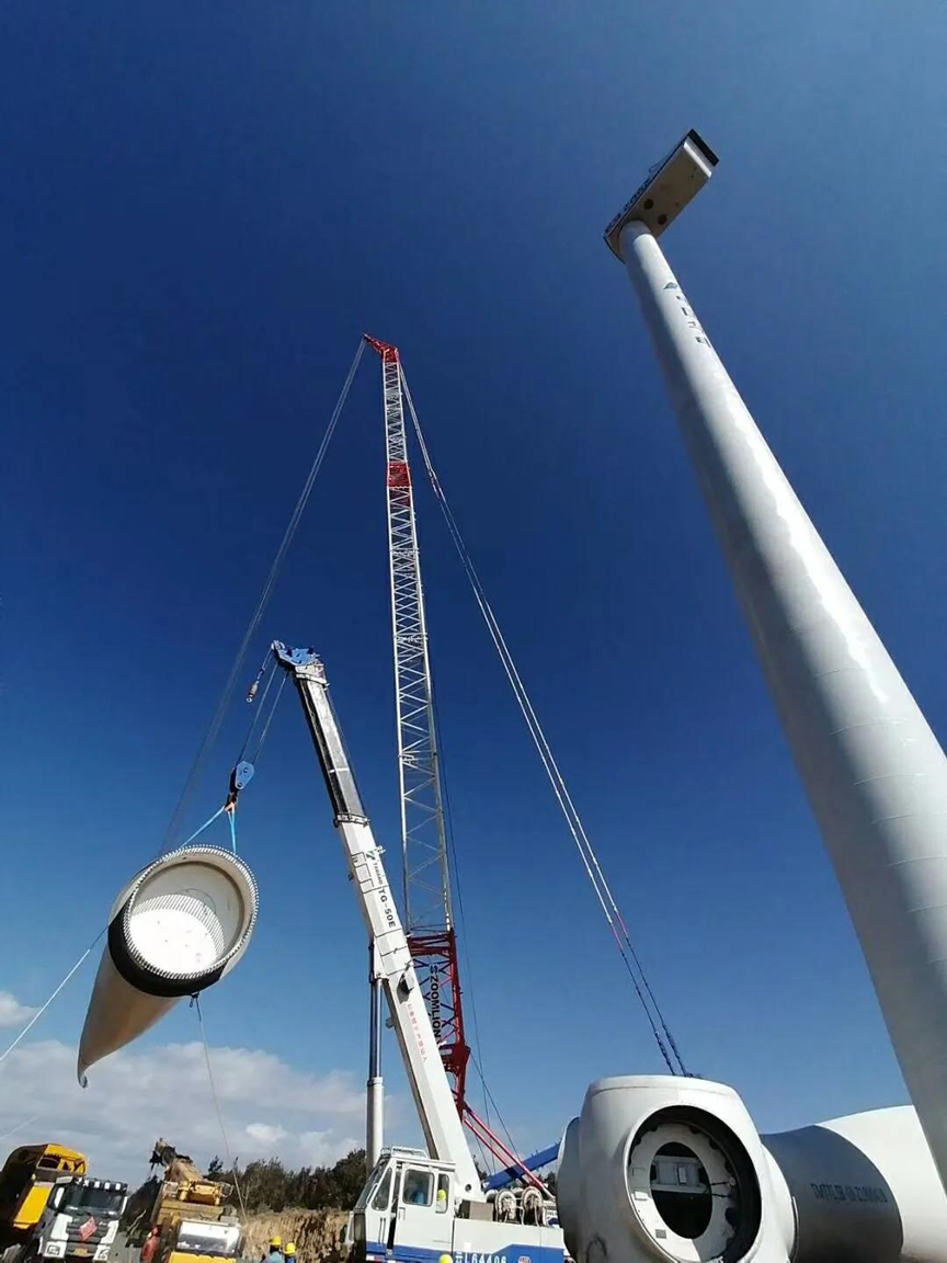 ?此次吊裝的機型單機容量3.3兆瓦,輪轂中心高度達100米,葉輪直徑達146米,掃風(fēng)面積16700余平方米,主臂102米,固定副臂7米;吊鉤**大起升高度可達106米,**大起重量140噸。隨著41號風(fēng)機葉輪緩緩上升與機艙傳動鏈合攏,標(biāo)志著西南地區(qū)**大單機容量為3.3兆瓦的首臺風(fēng)機吊裝成功,同時該臺風(fēng)電機組刷新了云南省風(fēng)電機組**大功率等級紀(jì)錄,成為西南地區(qū)單機容量**大、單臺風(fēng)機功率**大、風(fēng)輪直徑**大、陸上海拔**高的發(fā)電機組。