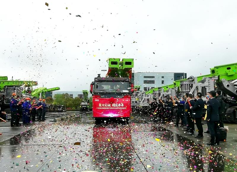 隨后,中聯(lián)重科向廣東宏盛工程裝備有限公司交付設(shè)備“金鑰匙”。伴隨著熱鬧的禮炮聲,一輛輛載著旋挖鉆機(jī)的大卡車井然有序的駛出了中聯(lián)重科上海工業(yè)園,正式踏上了建設(shè)全國重點(diǎn)工程項(xiàng)目的新征程。