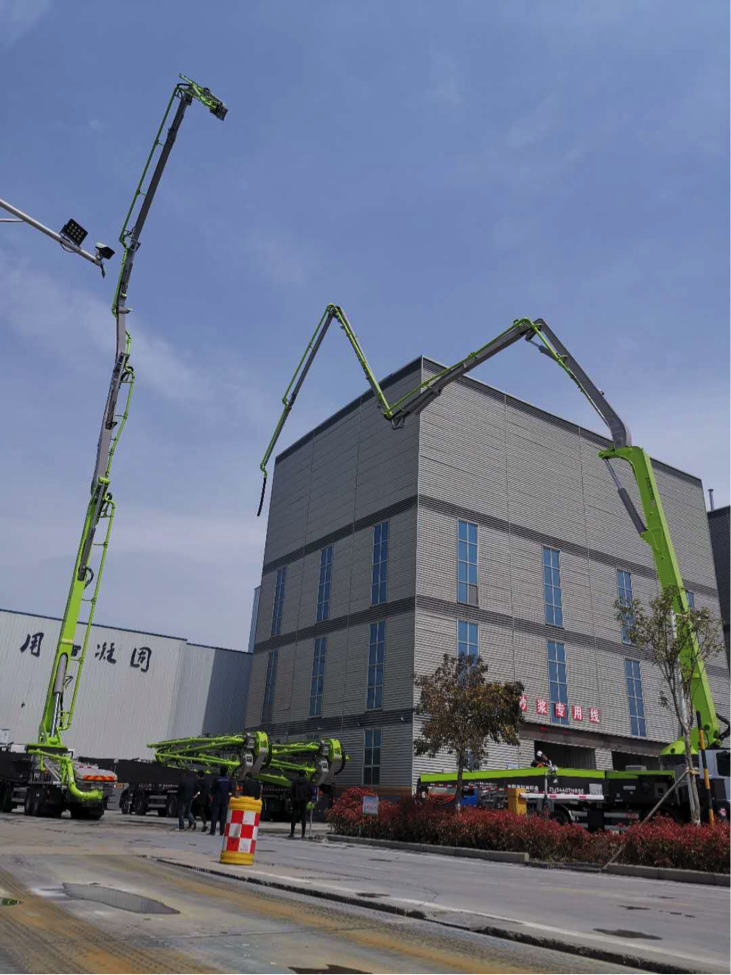 交付儀式上,一輛輛戴著大紅花的中聯(lián)重科泵車“小綠軍團(tuán)”浩浩蕩蕩地駛?cè)霑?huì)場(chǎng),數(shù)十臺(tái)泵車臂架同時(shí)升起,直指云霄,氣勢(shì)磅礴。中聯(lián)重科服務(wù)工程師與藍(lán)泰工作人員順利進(jìn)行了驗(yàn)車交付。