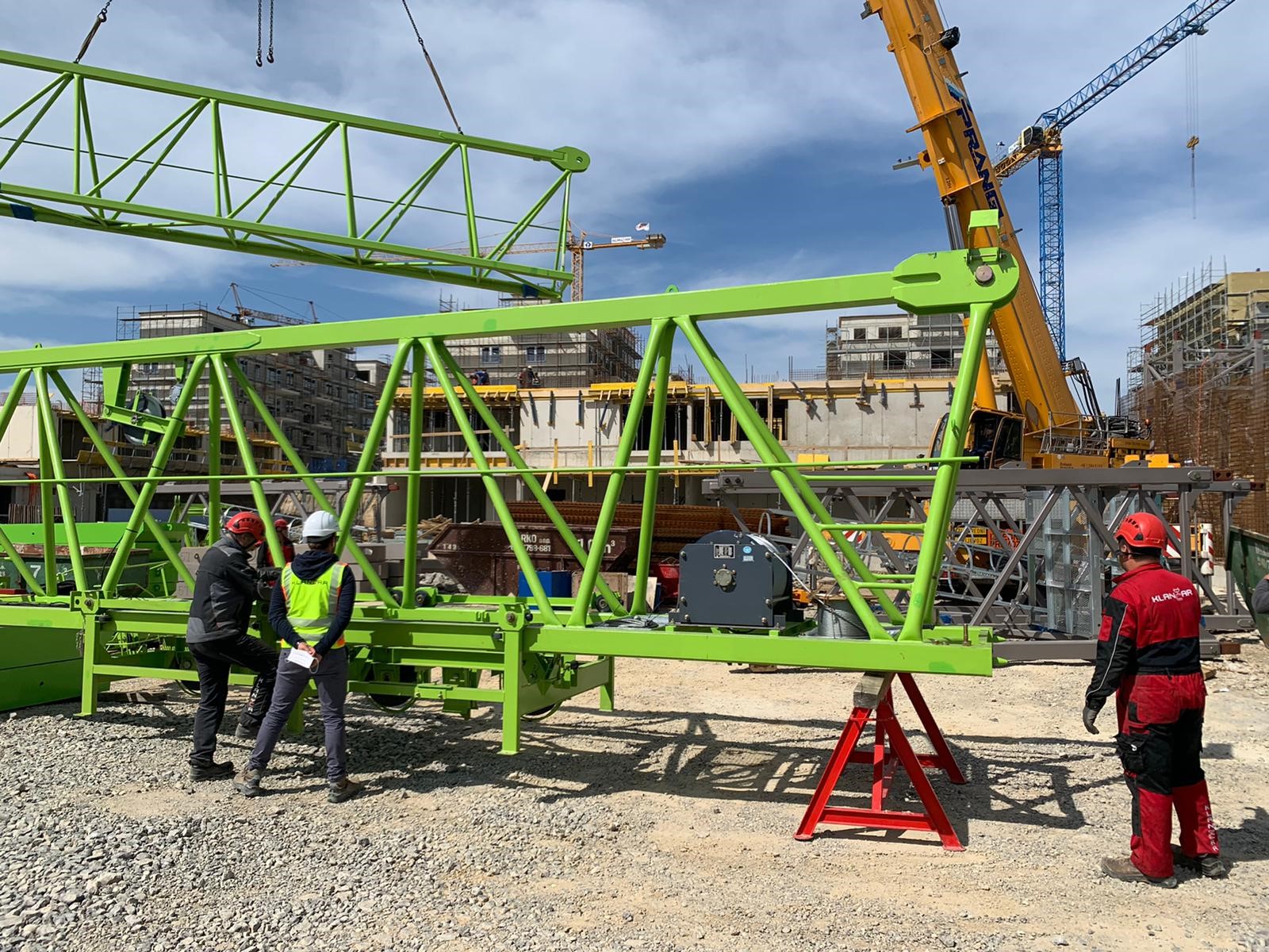 △在斯洛文尼亞某項(xiàng)目現(xiàn)場當(dāng)?shù)厝藛T正在組裝中聯(lián)重科塔機(jī)