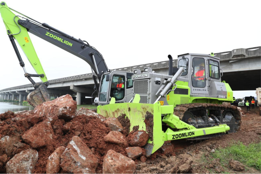 ? ?參與此次演練的中聯(lián)重科ZE205E-10挖掘機(jī)和ZD160-6推土機(jī)都是公司的拳頭產(chǎn)品。ZE205E-10配備定制化液壓系統(tǒng)精心匹配動(dòng)力系統(tǒng),擁有精準(zhǔn)靈敏的操作體驗(yàn);結(jié)構(gòu)件及底盤一體化大截面成型、底盤加厚加寬重載型設(shè)計(jì),堅(jiān)固耐用;動(dòng)力強(qiáng)勁可靠;駕駛室配備懸浮座椅并通過落物安全保護(hù)、翻滾安全保護(hù)認(rèn)證。 ZD160-6推土機(jī)配備160馬力推土機(jī)搭載濰柴高標(biāo)準(zhǔn)電控發(fā)動(dòng)機(jī),節(jié)能環(huán)保,高效低耗,動(dòng)力強(qiáng)勁。兩款產(chǎn)品能夠全面滿足和應(yīng)對不同應(yīng)急救援的土方作業(yè)要求。
