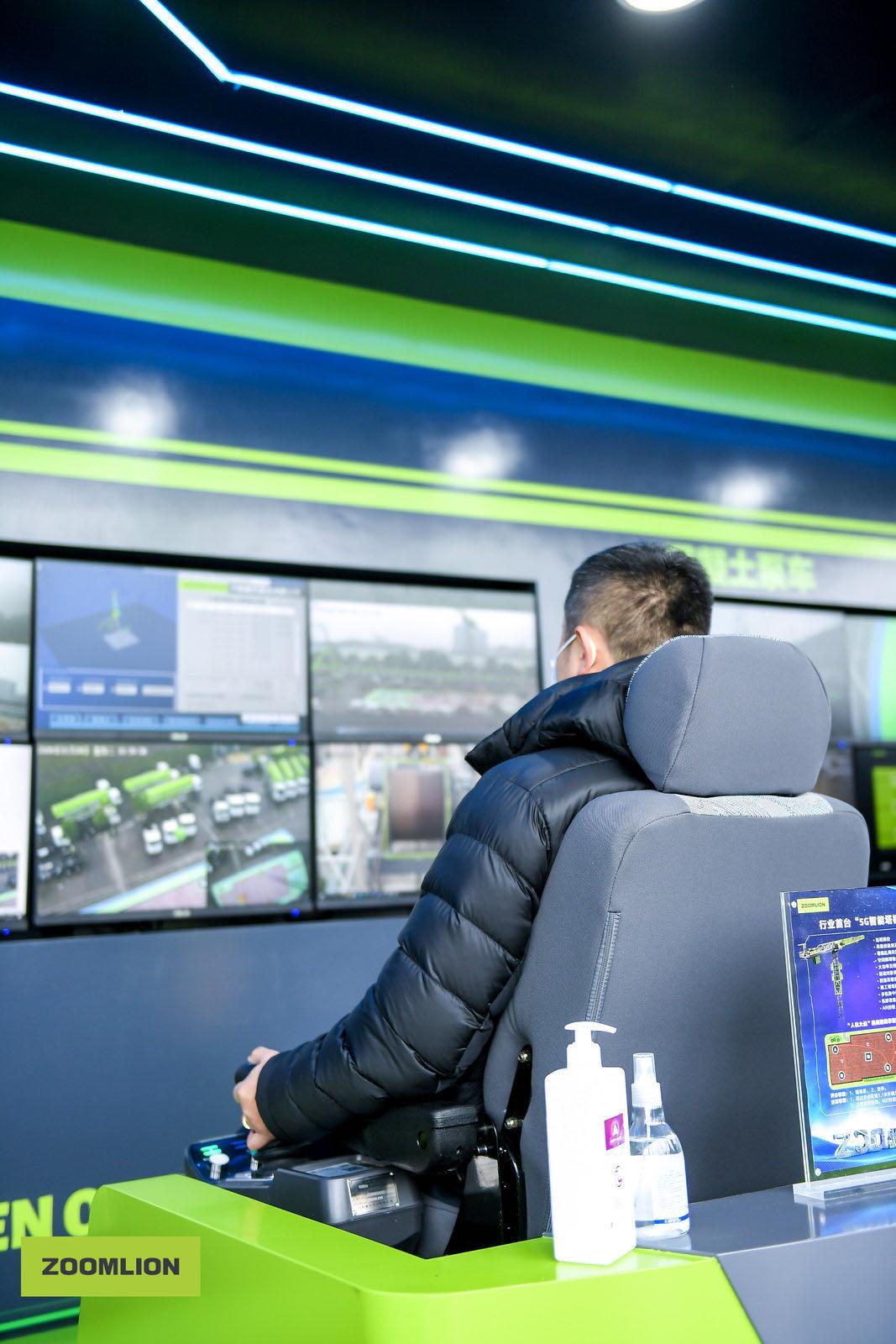 展臺前方,是中聯重科充滿未來感、前沿感的純電動汽車起重機的智能吊裝演示,以及混凝土泵車動態(tài)演示;展臺右側,則是塔機、泵車、挖掘機設備的5G遠程操控體驗中心,客戶親身的操作、體驗、感受,讓設備的“智能化”功能可觸、可感、可見。