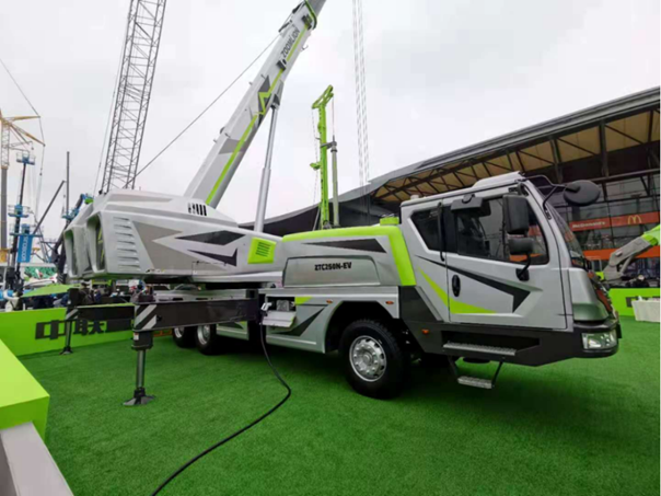 ▲中聯(lián)重科全球首臺整車純電驅動汽車起重機ZTC250N-EV涂裝新奇,造型前衛(wèi)