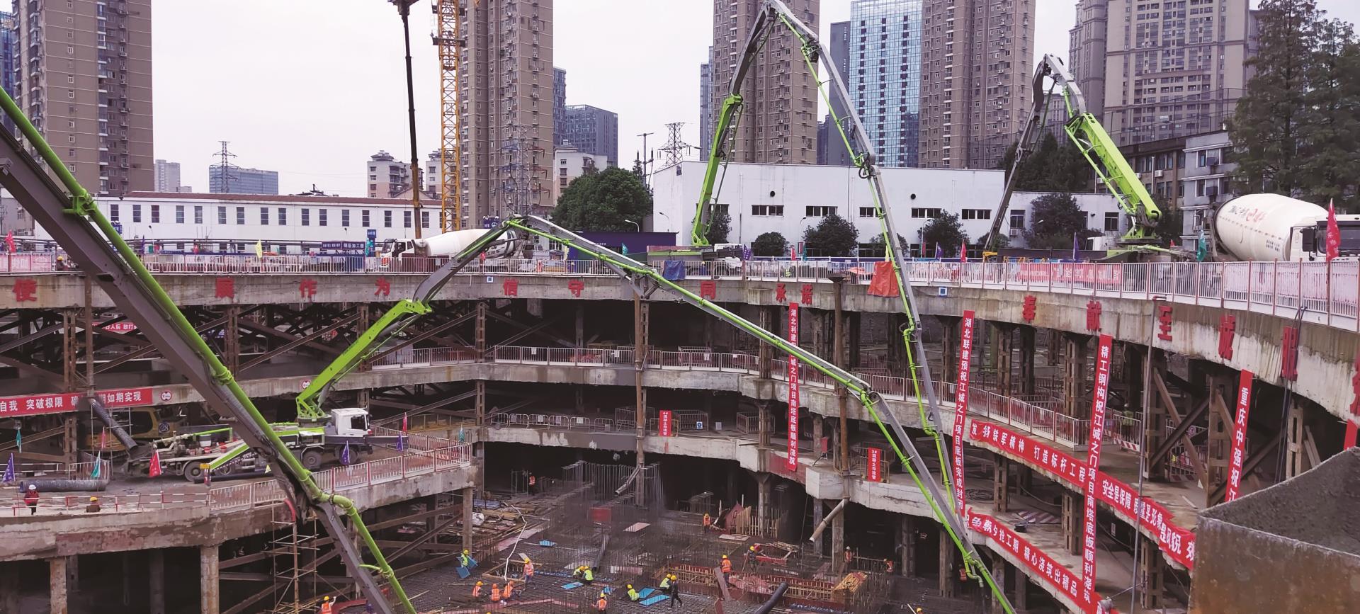 施工方經(jīng)過嚴格論證對比后,選用了中聯(lián)重科63米、56米泵車擔綱該項目澆筑任務。