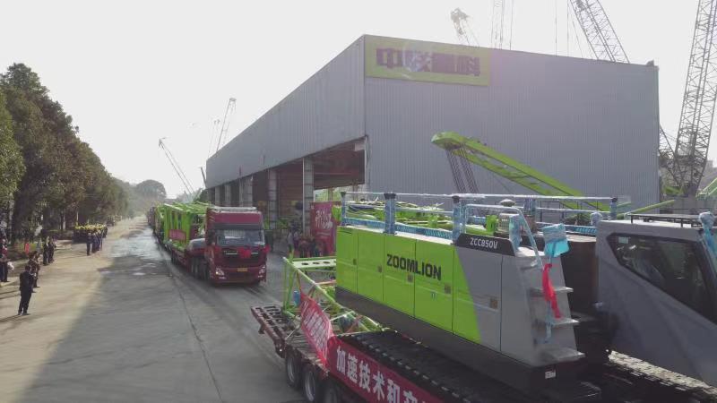 △2月18日,中聯(lián)重科開門紅當(dāng)天,十余臺(tái)履帶起重機(jī)明星產(chǎn)品起運(yùn)發(fā)往全球