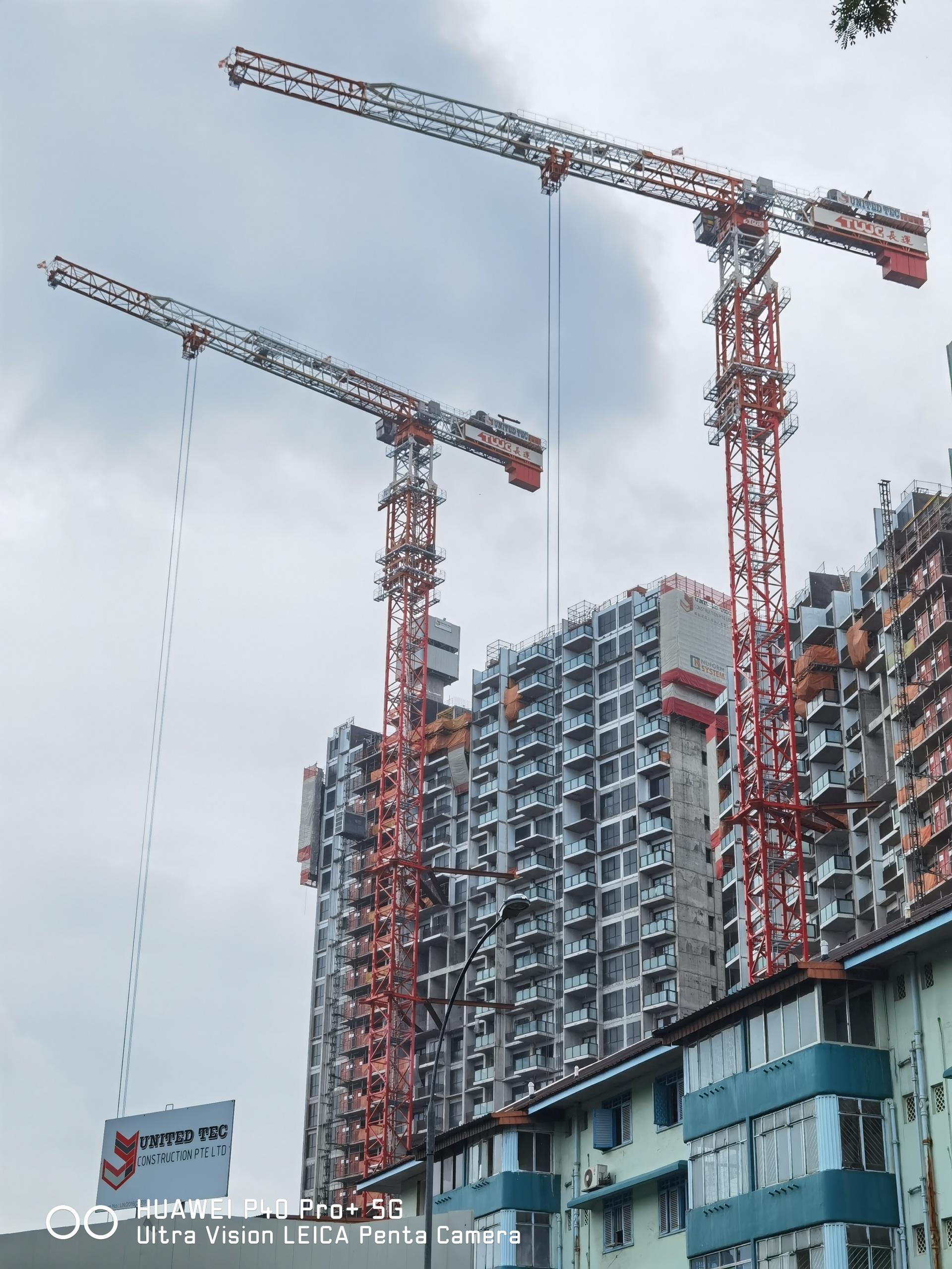 △中聯(lián)重科T1200-64W塔機在新加坡南峰雅苑住宅項目施工現(xiàn)場