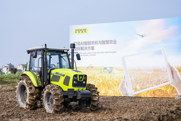 △活動現(xiàn)場展示的中聯(lián)智慧農(nóng)業(yè)數(shù)據(jù)采集設(shè)備及高端大馬力拖拉機