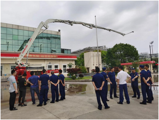 △消防支隊領(lǐng)導檢測中聯(lián)重科50米大跨距消防車各項性能