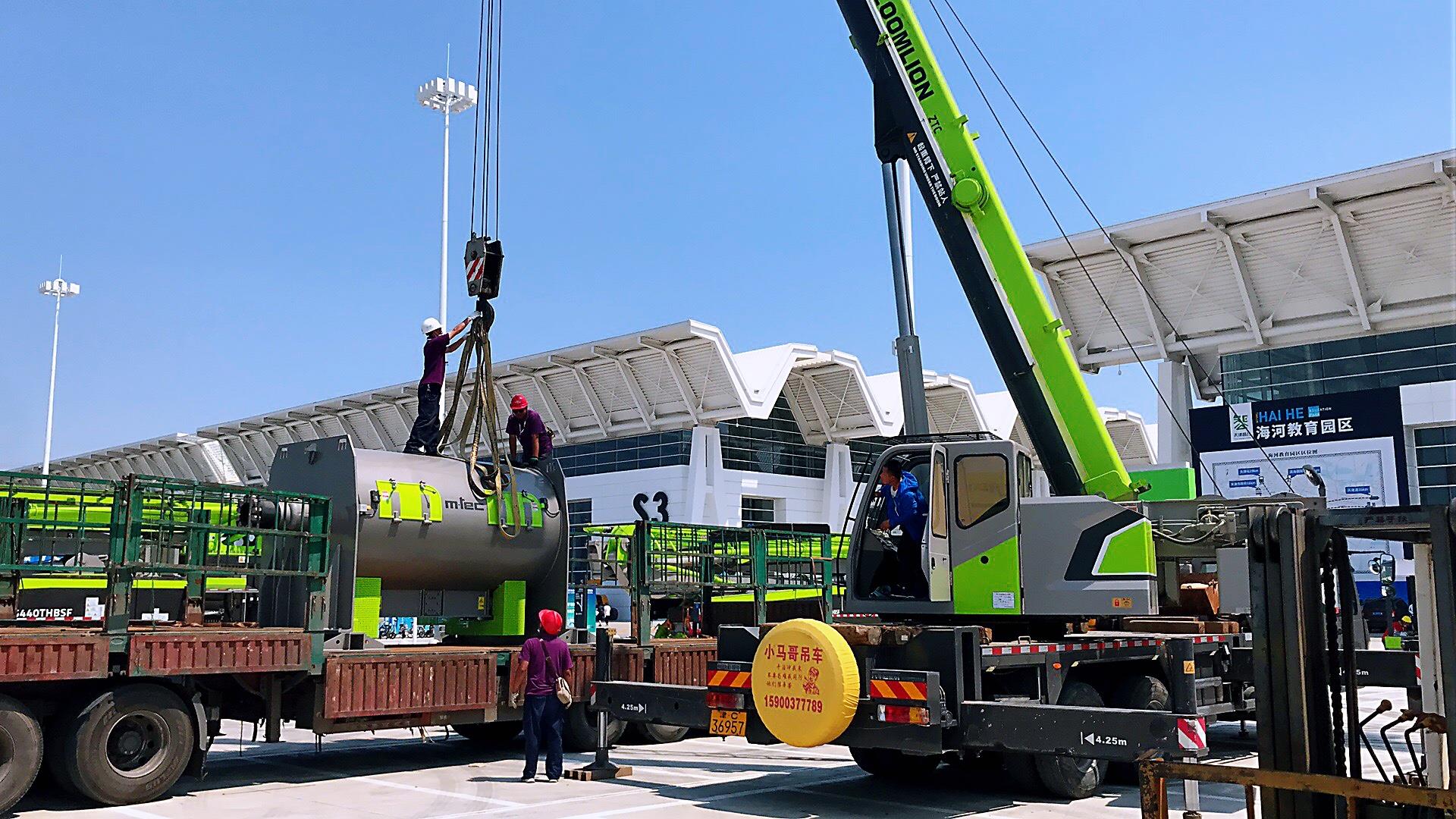 △中聯(lián)重科各類展品正有序進場