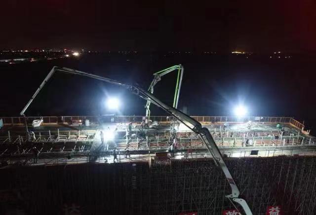 據(jù)了解,除了矗立長江中流擊水的中聯(lián)重科萬噸米級塔機(jī),中聯(lián)重科泵車等設(shè)備也正在為項(xiàng)目建設(shè)提供助力。7月30日凌晨5點(diǎn),經(jīng)過8個(gè)小時(shí)的連續(xù)奮戰(zhàn),常泰長江大橋北接線工程CT-TX1標(biāo)泰興東樞紐首聯(lián)現(xiàn)澆箱梁底腹板澆筑完成,項(xiàng)目正式進(jìn)入上部現(xiàn)澆結(jié)構(gòu)施工階段。其中負(fù)責(zé)澆筑的就有中聯(lián)重科混凝土泵車。