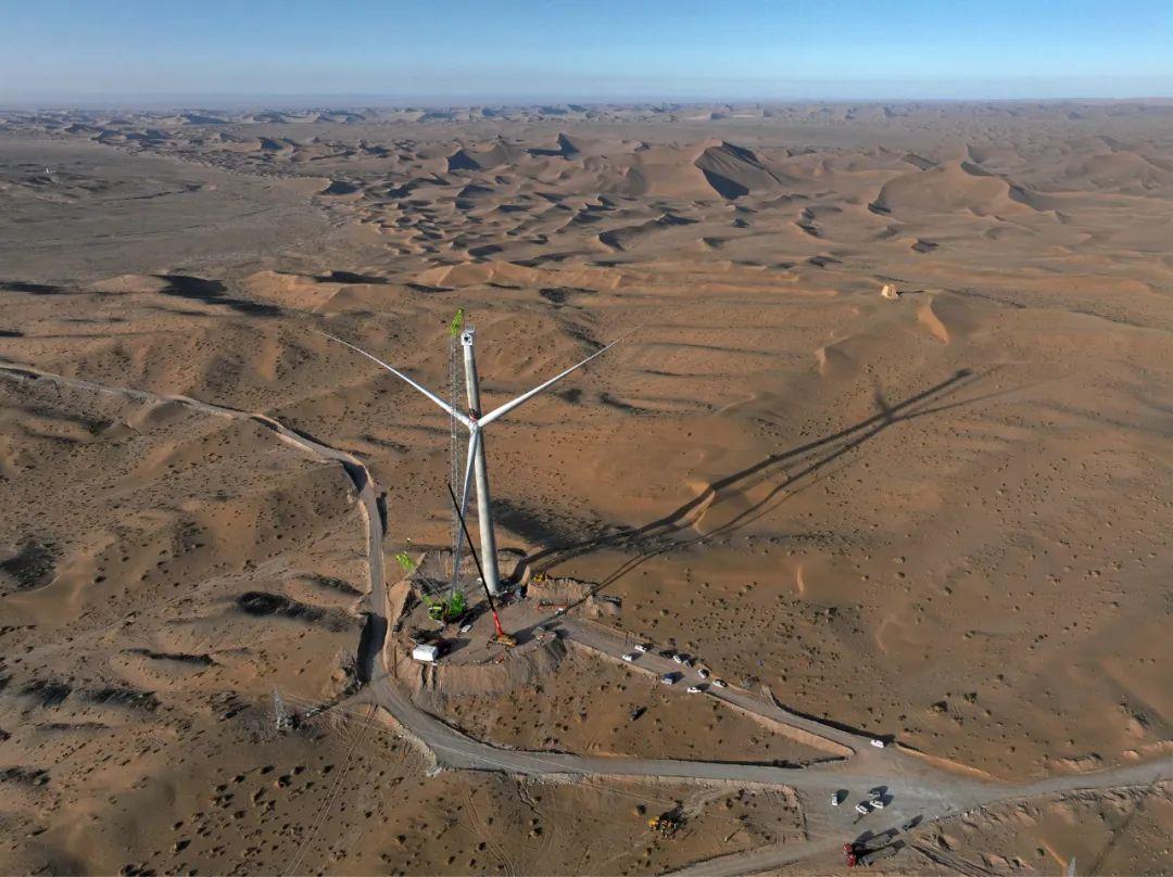 起吊、提升、精準對接……近日,在有著“中國**美的沙漠”之稱的巴丹吉林沙漠南緣的甘肅高臺縣北部灘40萬千瓦風電項目基地,來自中聯重科的ZCC11800履帶起重機成功吊裝了項目首臺120米混塔,助力該項目建設又一次取得實質性突破。