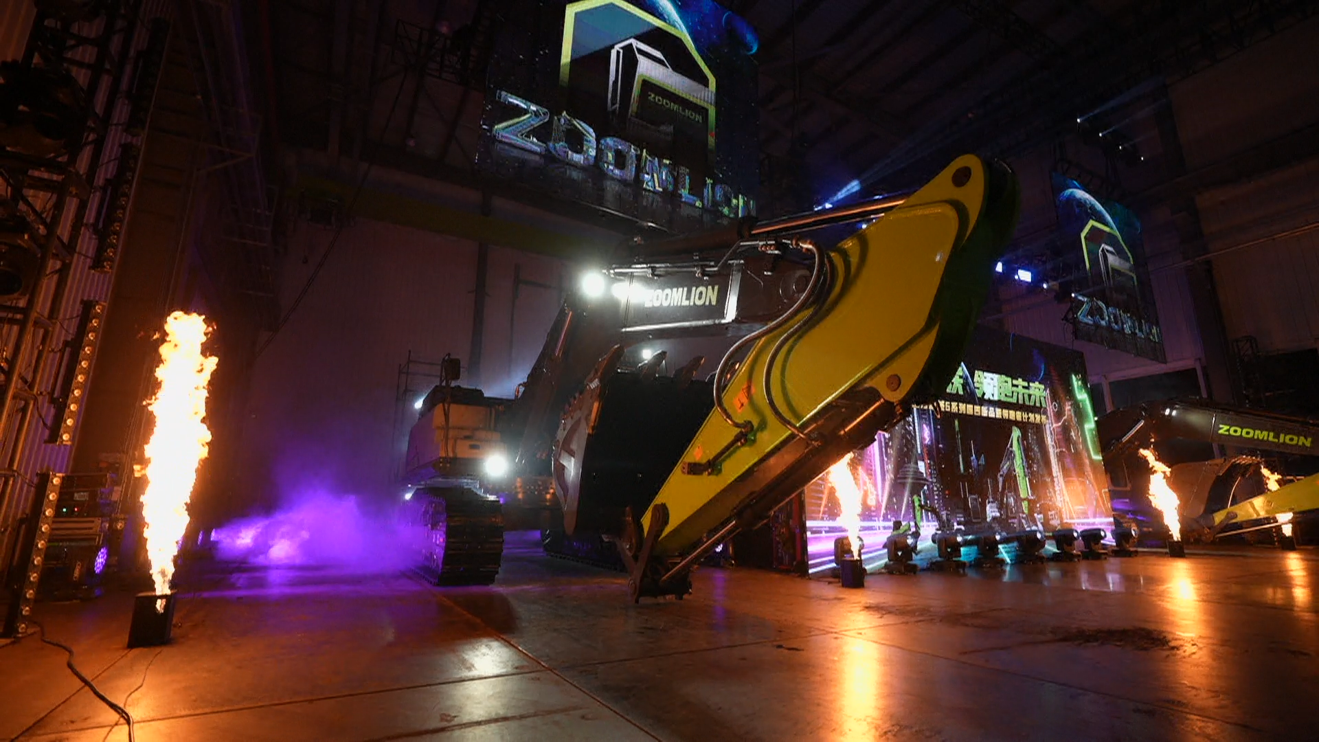 ▲中聯(lián)重科土方機械G系列國四新品發(fā)布會現(xiàn)場