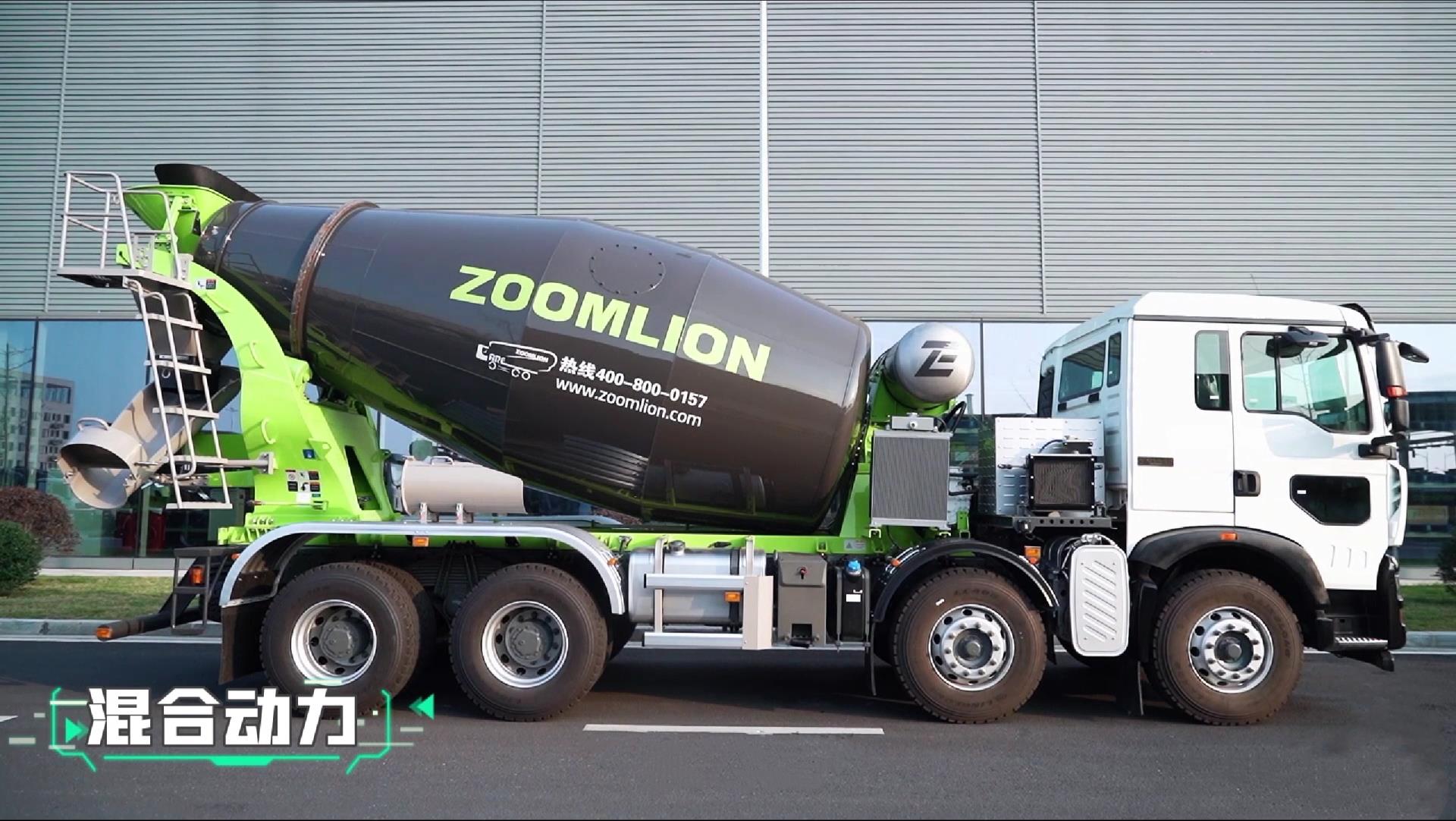 ▲中聯(lián)重科推介的混合動(dòng)力攪拌車(chē)