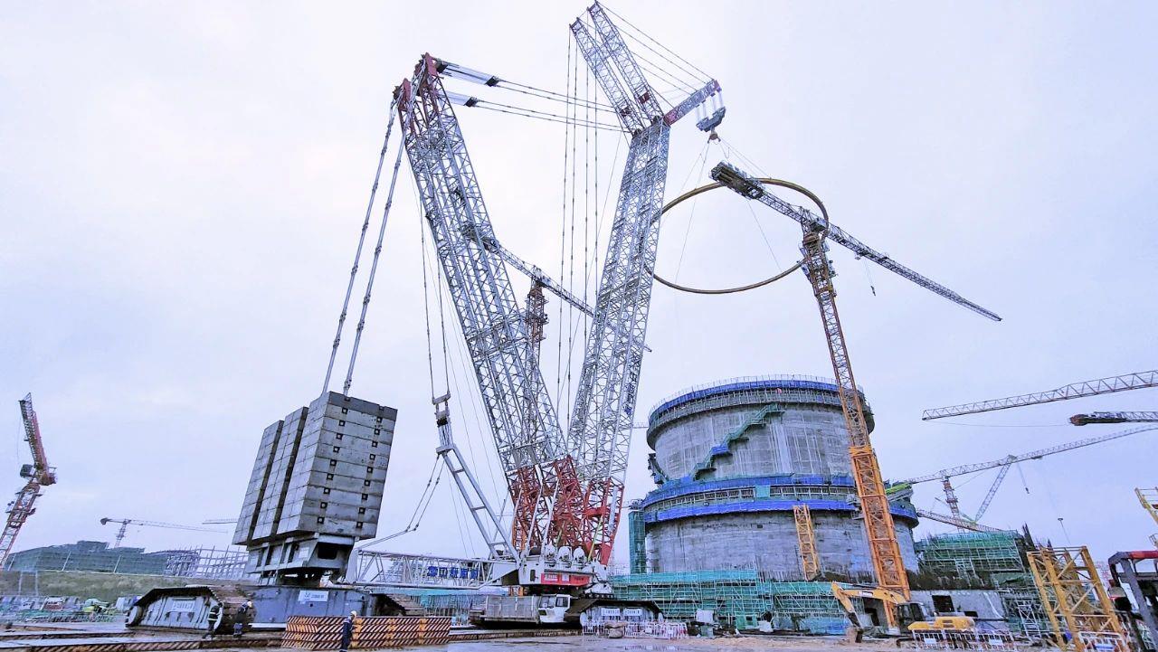 ▲中聯(lián)重科3200噸履帶吊正在進(jìn)行環(huán)梁環(huán)軌吊裝(圖片來源于“華能昌江核電”公眾號(hào))