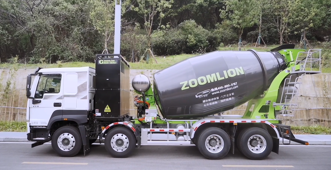 ▲中聯(lián)重科打造的輕量化純電動(dòng)攪拌車