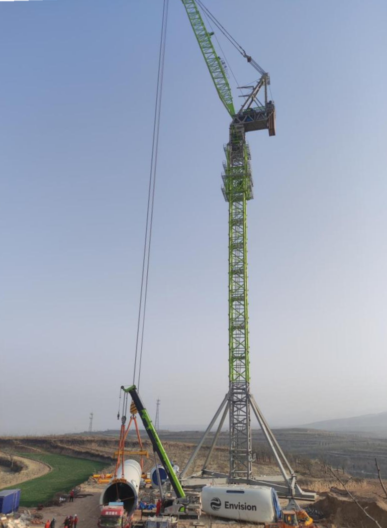 △中聯(lián)重科風(fēng)電動臂塔機LW2340-180正在吊裝