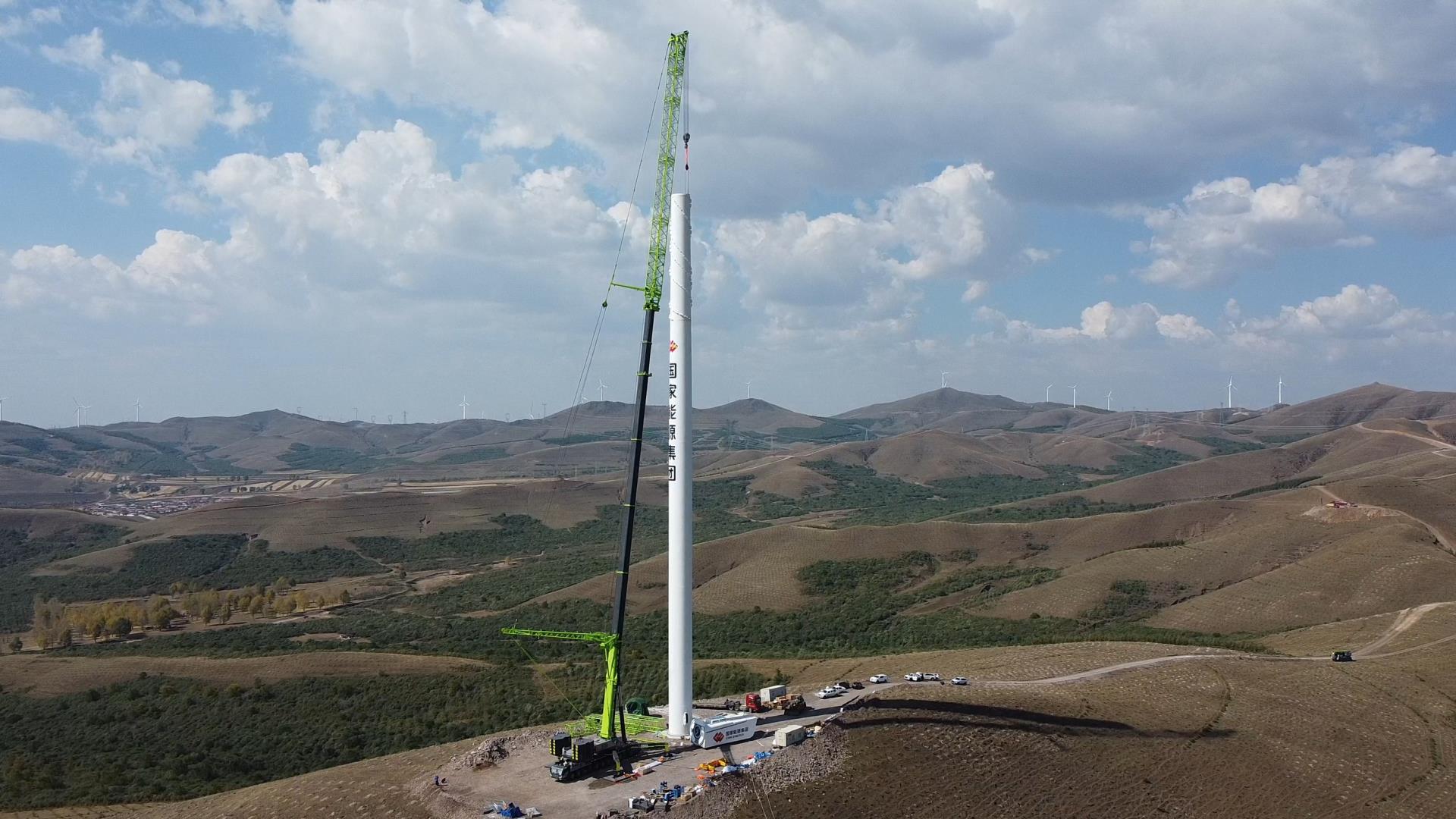 ▲中聯(lián)重科全球**大噸位全地面起重機正在進行風電吊裝