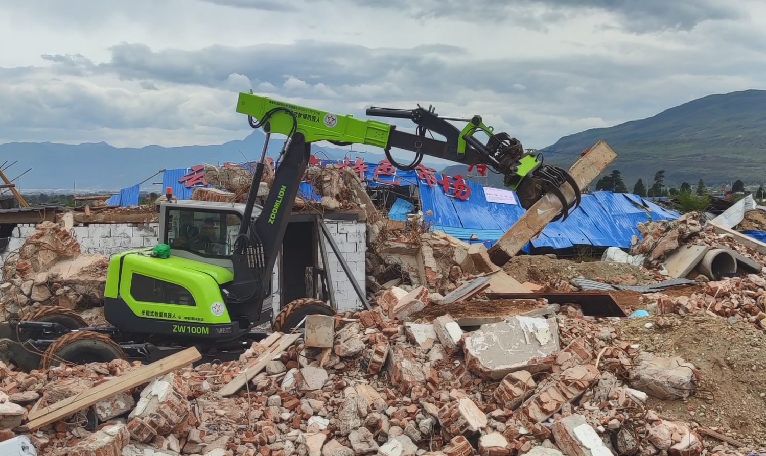 ▲中聯(lián)重科高機(jī)動(dòng)多功能模塊化救援裝備正在清理障礙