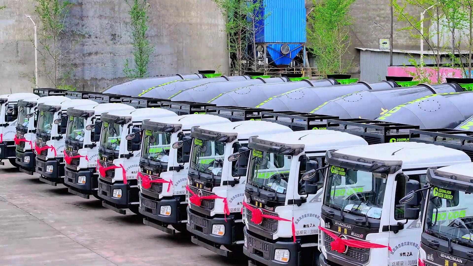 ▲中聯(lián)重科“凌冠”系列新能源攪拌車交付宜賓