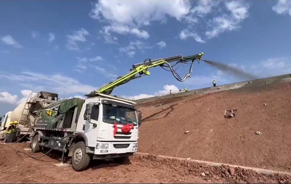 平陸運河項目進入主體工程施工建設(shè)階段以來,現(xiàn)場中聯(lián)重科濕噴機設(shè)備已達10余臺,主要負責(zé)基坑、護坡等的混凝土澆筑噴射工作?!霸O(shè)備經(jīng)常要臂架朝下濕噴作業(yè),并克服混凝土料離析等問題,滿負荷完成施工目標要求。我們的‘先鋒’系列汽車底盤ZC3017濕噴機,從交付使用至今僅半年多時間泵送均接近9300方,零故障工作至今,高效可靠地配合了現(xiàn)場建設(shè)者們的奮戰(zhàn)?!敝新?lián)重科混凝土機械駐欽州項目現(xiàn)場的服務(wù)工程師表示。