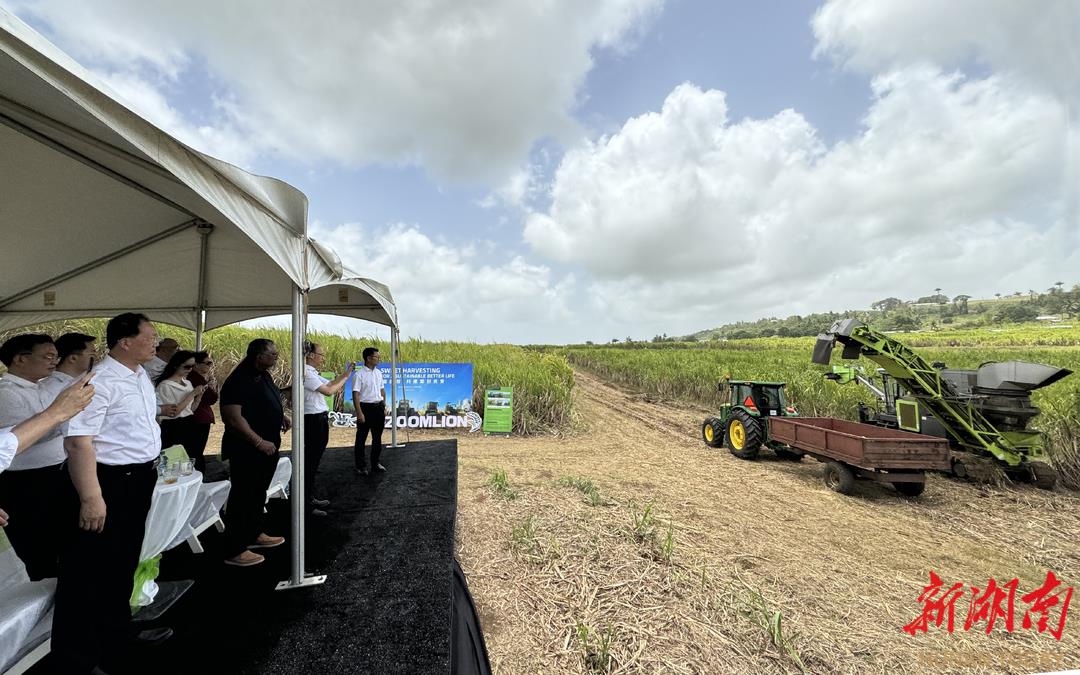 21日當(dāng)天,毛偉明與代表團(tuán)還調(diào)研了中聯(lián)重科與巴巴多斯合作甘蔗基地。在中聯(lián)重科與BAMC農(nóng)機(jī)及智慧農(nóng)業(yè)合作項(xiàng)目現(xiàn)場,當(dāng)?shù)剞r(nóng)業(yè)部門負(fù)責(zé)人介紹,由中聯(lián)重科捐贈(zèng)的甘蔗收割機(jī)大大提高了甘蔗收割和秸稈利用效率,“一臺(tái)機(jī)器相當(dāng)于40個(gè)工人,效果‘very good’(非常好)!”毛偉明指出,要充分發(fā)揮湖南農(nóng)機(jī)裝備產(chǎn)業(yè)優(yōu)勢,因地制宜提升農(nóng)機(jī)裝備的機(jī)械化、自動(dòng)化、數(shù)字化水平,研發(fā)打造“甘蔗”版聯(lián)合收割機(jī),以高水平科技創(chuàng)新助推農(nóng)業(yè)國際合作高水平發(fā)展。