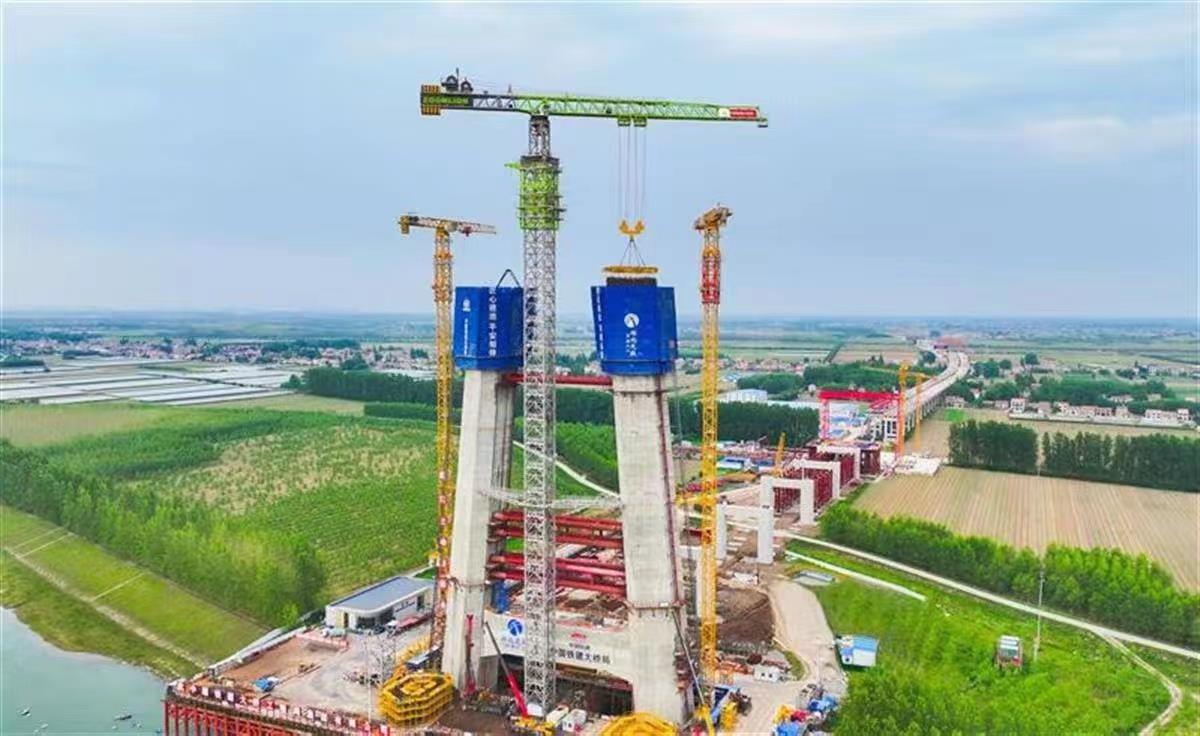 △中聯(lián)重科多臺塔機助建世界**大跨度公路斜拉橋