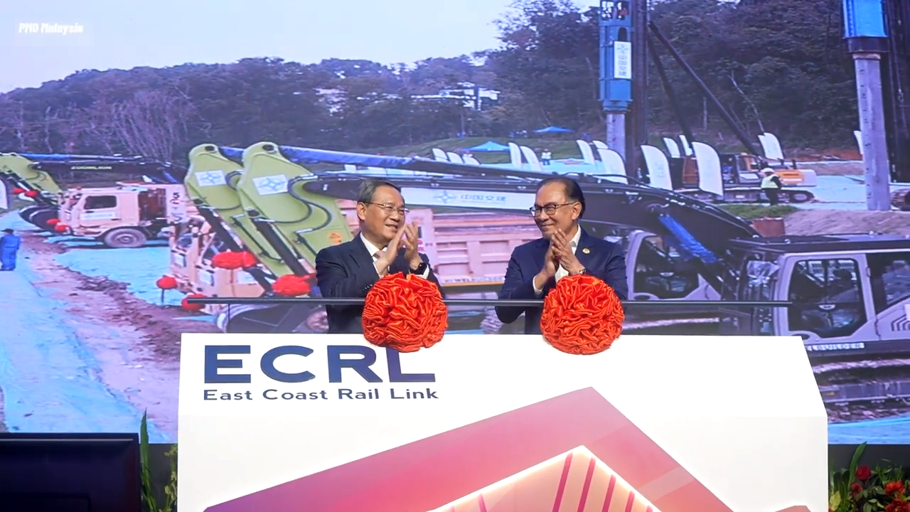 △中馬兩國總理共同推桿,正式啟動鵝嘜車站建設(圖片來源:馬來西亞總理辦公室)