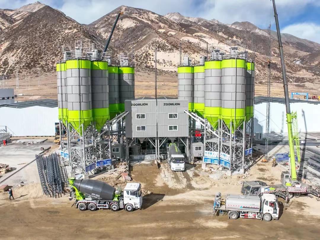 △建設(shè)正酣的川藏鐵路沿線,遍布有40多座中聯(lián)重科為其量身定制的高原型攪拌站