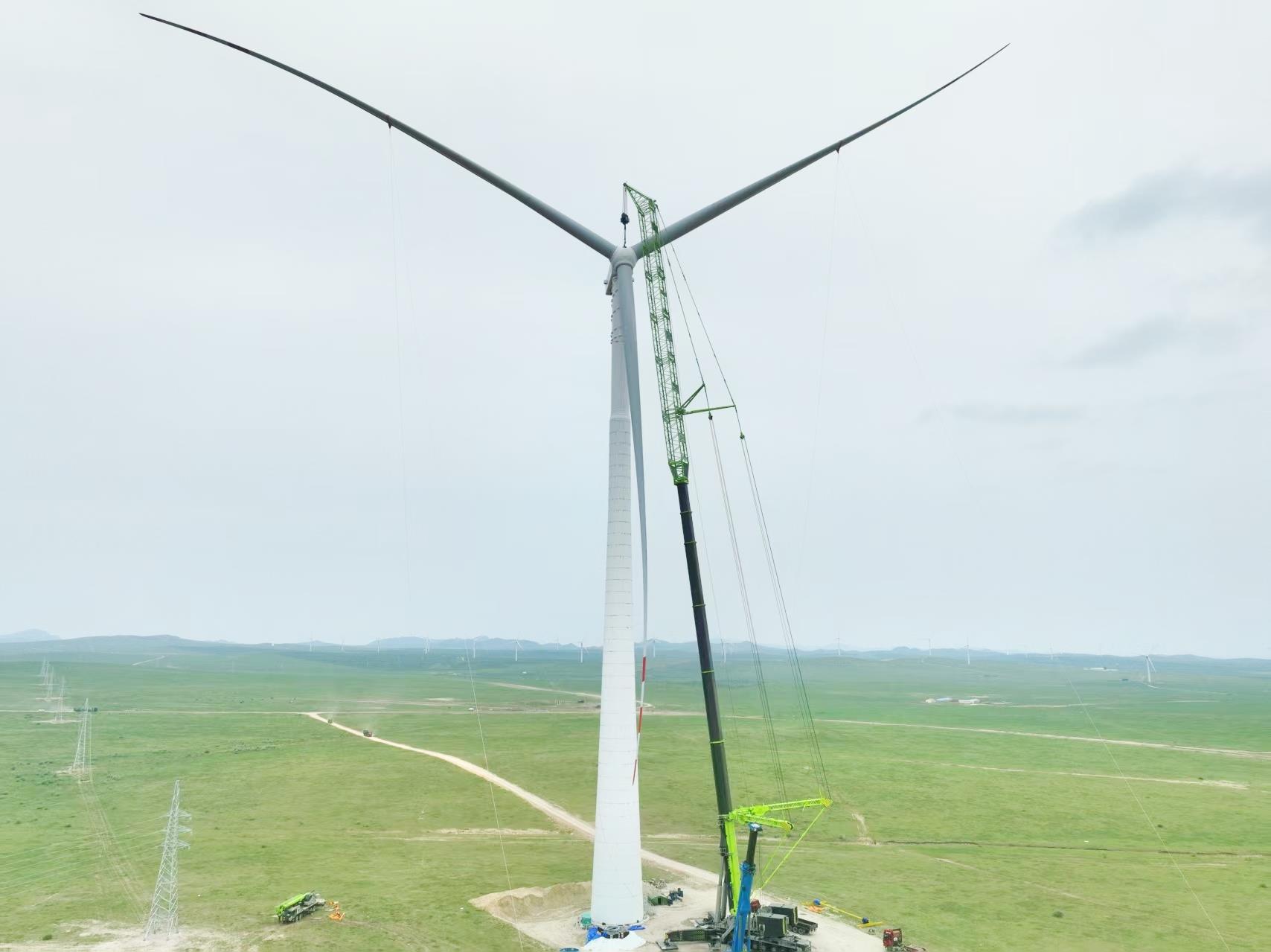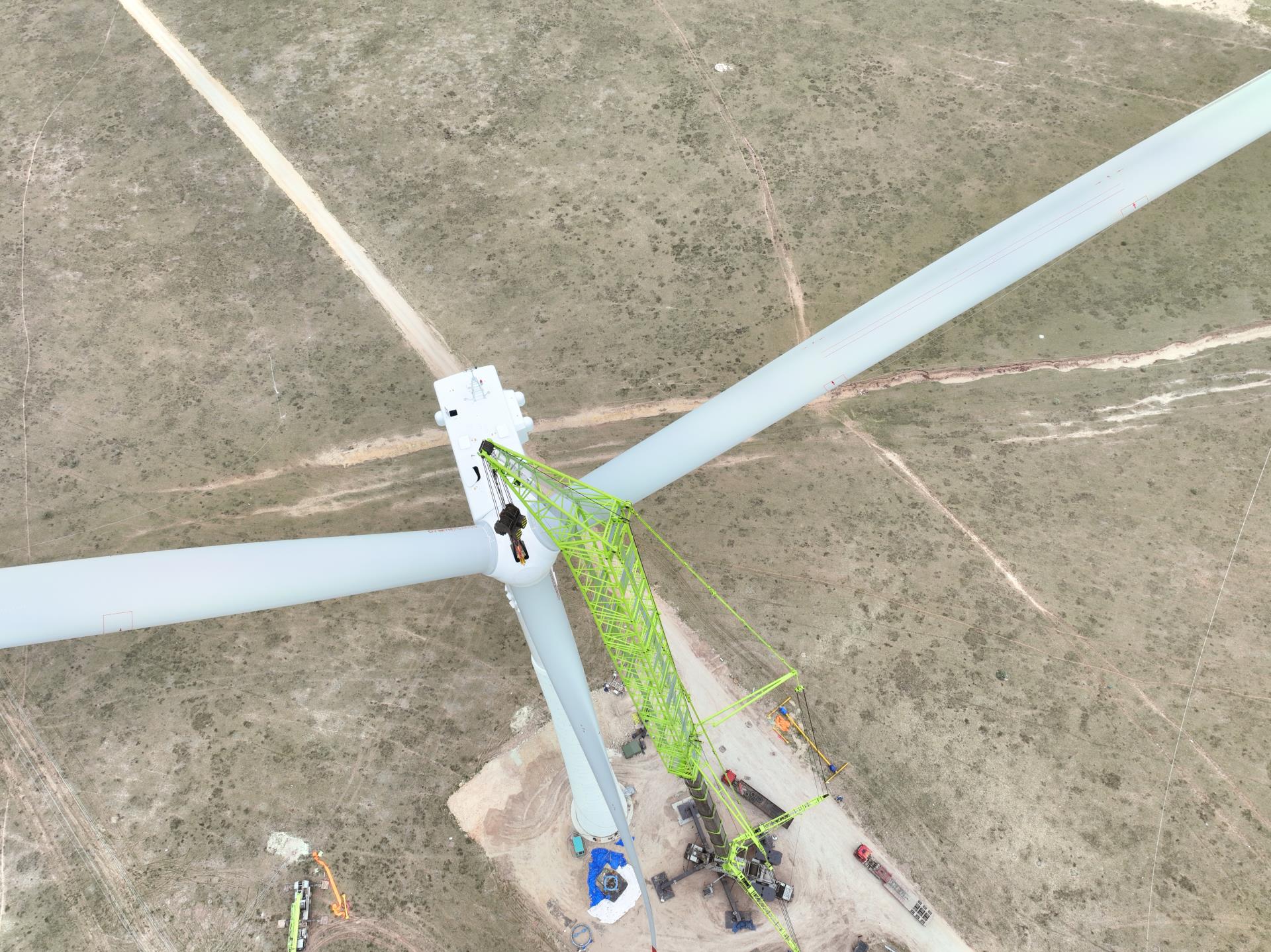 內(nèi)蒙古能源阿魯科爾沁100萬千瓦風(fēng)儲基地項目,是國家**三批“沙戈荒”大型風(fēng)電基地建設(shè)項目,項目采用單機(jī)容量10兆瓦的陸上風(fēng)電機(jī)組,以及140米高的混塔技術(shù),吊裝難度和要求很高。