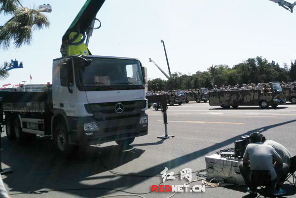 (中聯(lián)重科33米泵車在大閱兵拍攝現場。)
