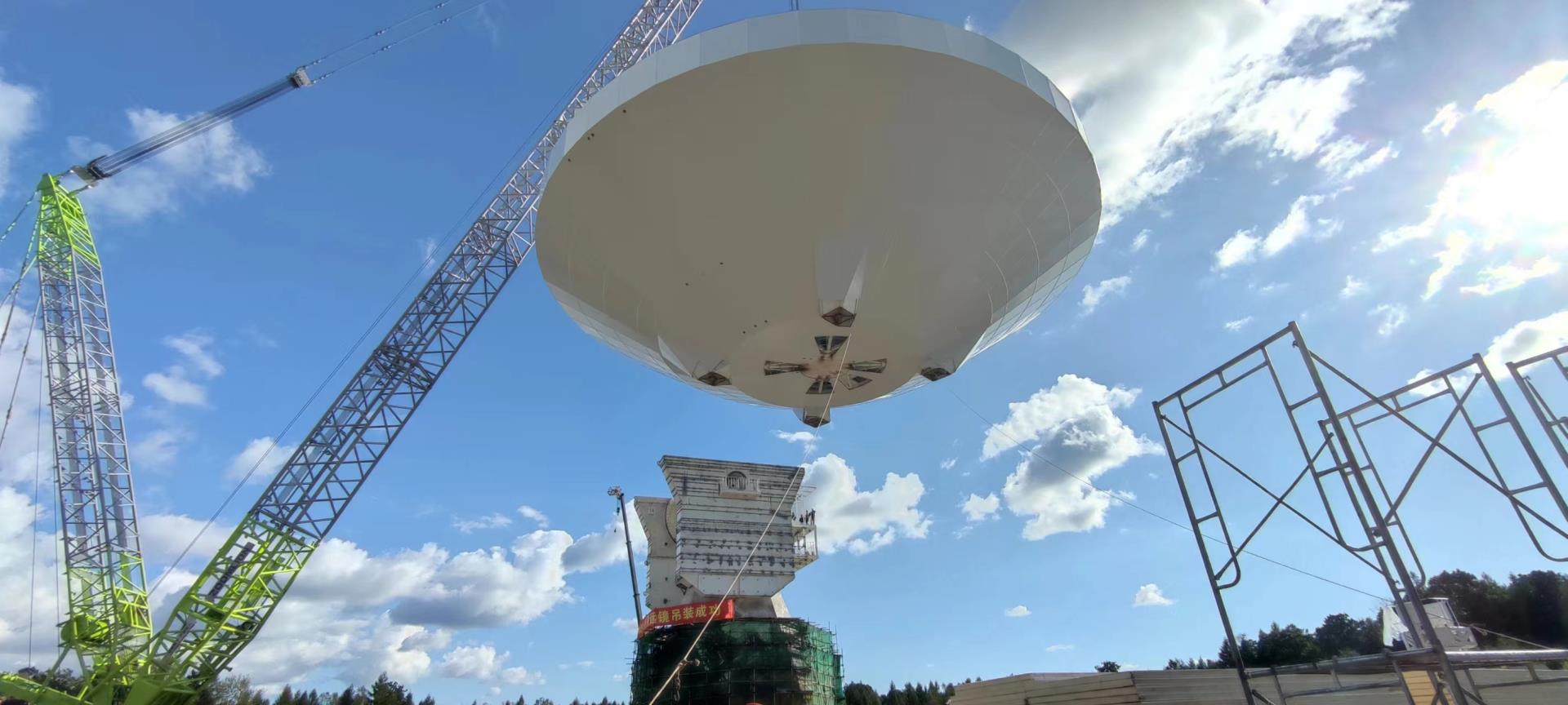 10月7日,由中國科學院上海天文臺與中國電科39所聯(lián)合研制的日喀則40米射電望遠鏡,在西藏自治區(qū)日喀則市由中聯(lián)重科QUY650履帶式起重機順利完成天線系統(tǒng)主反射體吊裝,標志著天線機械架設初步完成,為后續(xù)望遠鏡電氣調(diào)試等聯(lián)調(diào)奠定了堅實基礎。