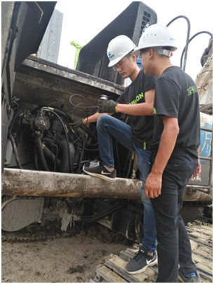 ??? 近日,基礎(chǔ)施工華南大區(qū)小分隊繼服務(wù)萬里行首站告捷后,迅速從廈門出發(fā),前往100公里以外的晉江項目地點。中聯(lián)重科極光綠設(shè)備在工地上格外耀眼,小分隊成員遠(yuǎn)在方圓百米外就已看到它高效施工的身影。抵達(dá)現(xiàn)場時,發(fā)現(xiàn)還有兩臺老涂裝設(shè)備依然“能量無限”,承擔(dān)著項目重任?!斑@是中聯(lián)重科2008年的旋挖鉆機ZR220A,是福建片區(qū)的**一臺旋挖鉆機,至今仍然非常好用。中聯(lián)產(chǎn)品品質(zhì)真的很不錯?!?機手感慨道。