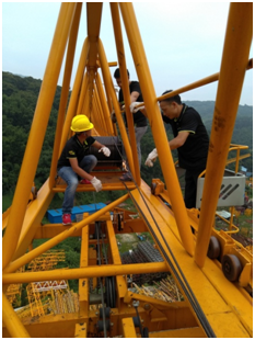 ▲小分隊成員在發(fā)現(xiàn)鋼絲繩跳槽問題后立馬進(jìn)行了處理