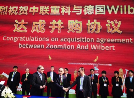 ▲中聯(lián)重科收購(gòu)德國(guó)威爾伯特(WILBERT)簽約現(xiàn)場(chǎng)