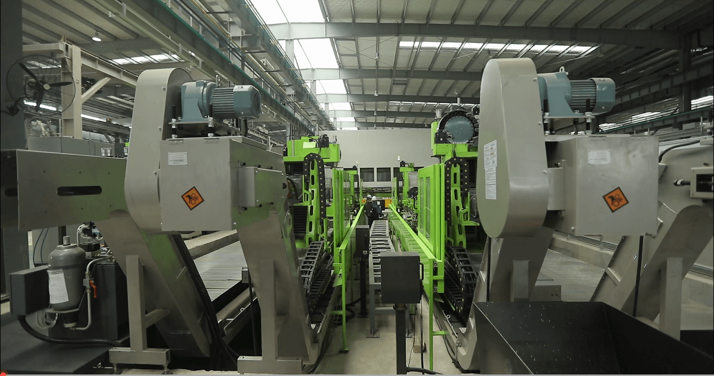 ? ? 遵循流線(xiàn)化、自動(dòng)化、智能化、柔性化、綠色化理念,智能工廠(chǎng)建有型材下料線(xiàn) 、ABM線(xiàn)、榫頭線(xiàn)、E線(xiàn)等12條自動(dòng)化生產(chǎn)線(xiàn)。