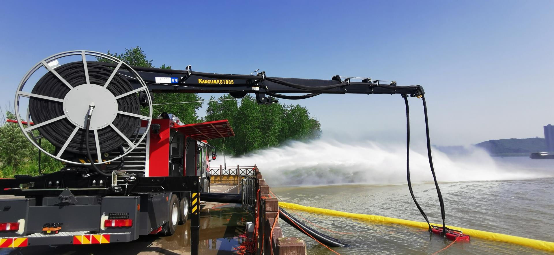 ? ??中聯(lián)重科泵浦消防車為大流量遠程供水系統(tǒng)的子車型,與水帶敷設(shè)消防車和器材消防車配套使用。該系統(tǒng)可將幾公里甚至幾十公里以外的天然水源,科學(xué)合理、及時有效、不間斷地輸送到火災(zāi)現(xiàn)場,可同時給多臺消防車或消防水槍、消防炮連續(xù)長時間供水,為火災(zāi)現(xiàn)場提供堅強有力的供水保障。