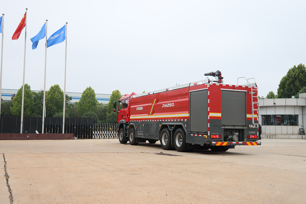 中聯(lián)牌PM250A6型泡沫消防車,整車機動靈活,裝備常規(guī)型B類泡沫系統(tǒng),適合撲救工業(yè)與民用建筑A類火災(zāi),亦可撲救石化,煤化,油庫等B類火災(zāi);全鋁合金車身,自重輕,強度高,防腐蝕性能好,可隨車攜帶多種搶險救援器材,是城市應(yīng)急救援消防隊與企業(yè)專職消防單位滅火救援的重要裝備。