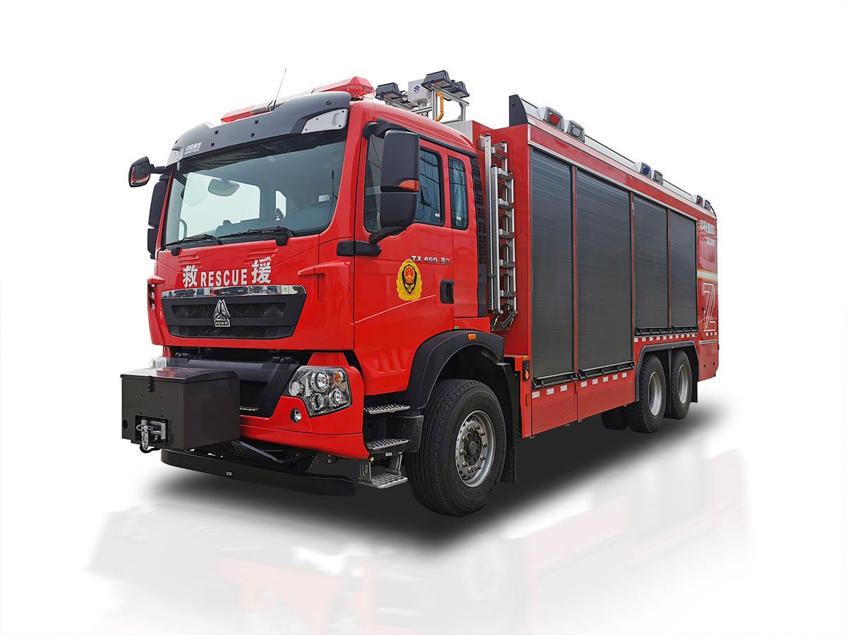 可裝備絞盤、升降照明系統(tǒng)、液壓尾板、堆垛機、液壓破拆工具組、偵檢器具、救生器具等超過200件搶險救援器材,是集照明、供電、牽引、起吊、破拆、偵查、救援等功能于一體的多功能消防車,是火災、地震、抗洪、車禍等各類災害搶險救援的主力車型。